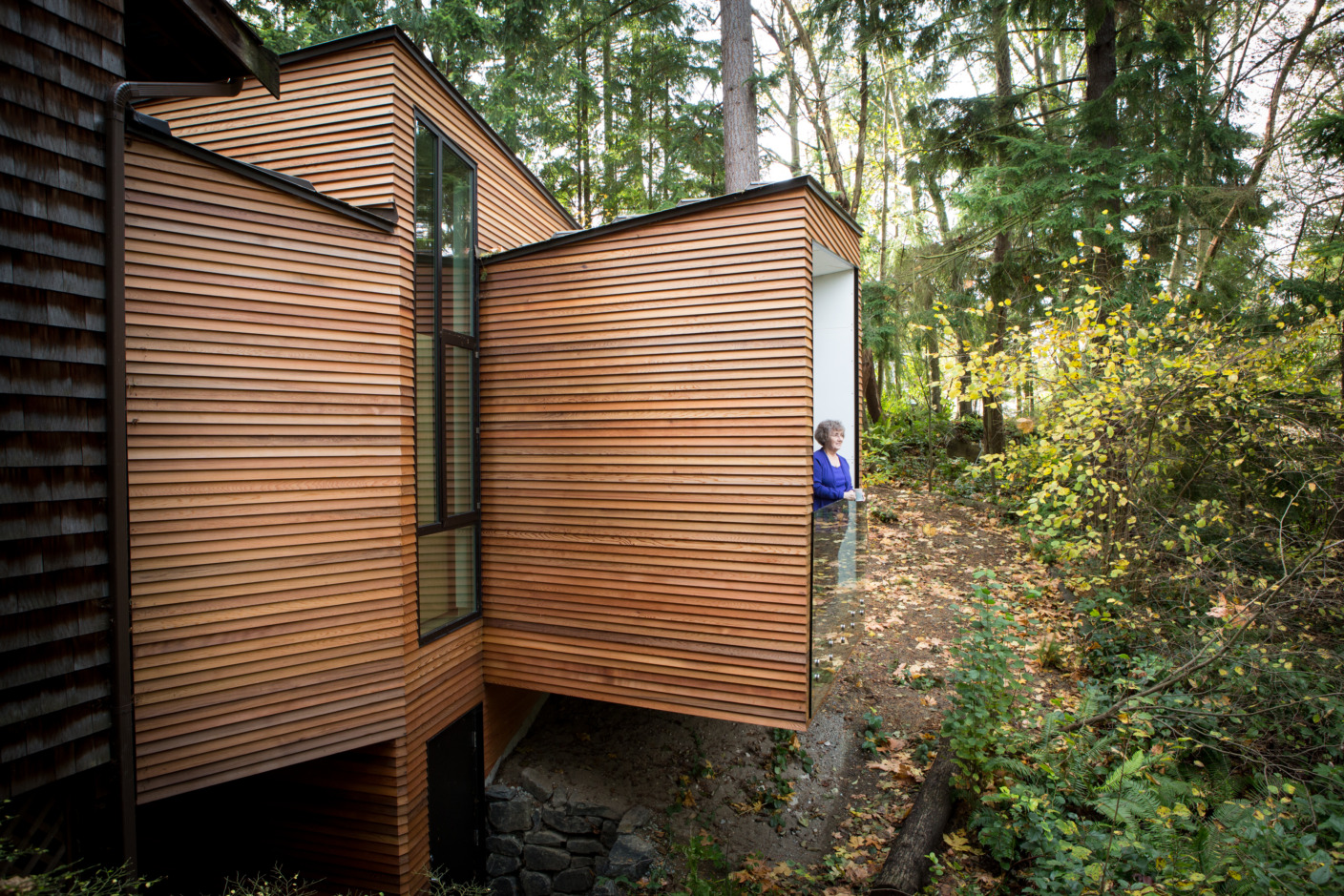Stevens Addition by Architecture for Everyone is a sensitive addition to a single family home that understands the occupant’s basic physical, neural and psychological needs as someone who has been diagnosed with Alzheimer’s disease. The addition fits the wooded site and respects the existing modern northwest style house that was originally designed by Jane Hastings, FAIA. The design keeps the home as homelike as possible which includes a lot of “familiarity and sensitivity to the landscape and respecting time as an experiential condition”. The jurors were emotionally moved by how the home is “not asking for attention, but asking to be lived in.”