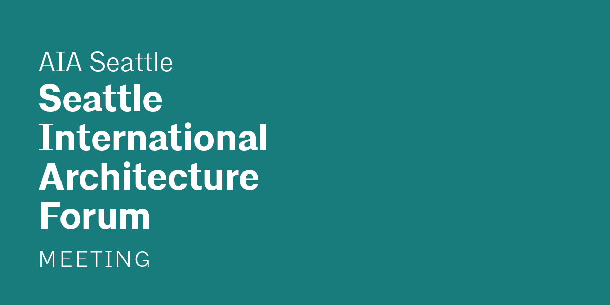 The Seattle International Architecture Forum meets the third Wednesday of every month at 5:15pm. AIA Seattle members, allied members and sponsors are encouraged to join as well as other professionals in the design community.