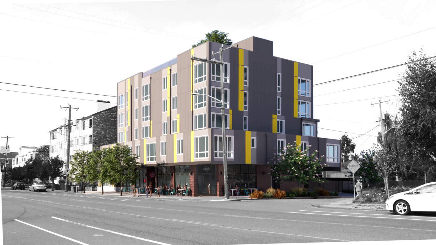 The site is located in a walkable neighborhood commercial zone with retail amenities nearby, a playground across the street, and spectacular views in either direction to the Cascade and Olympic Mountains. The property is well-served by transit with a bus stop located right in front of the building. Commercial spaces will be first offered to the current retail tenants.