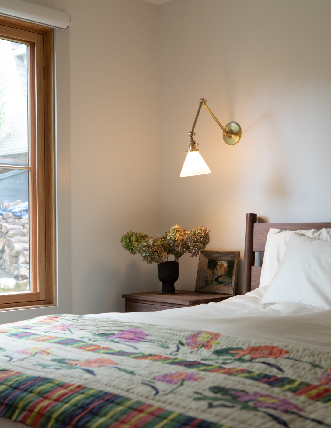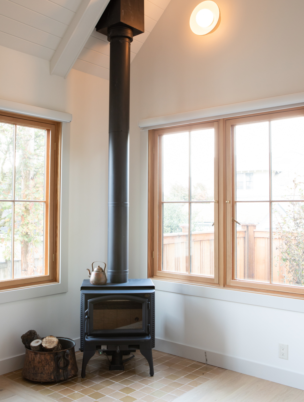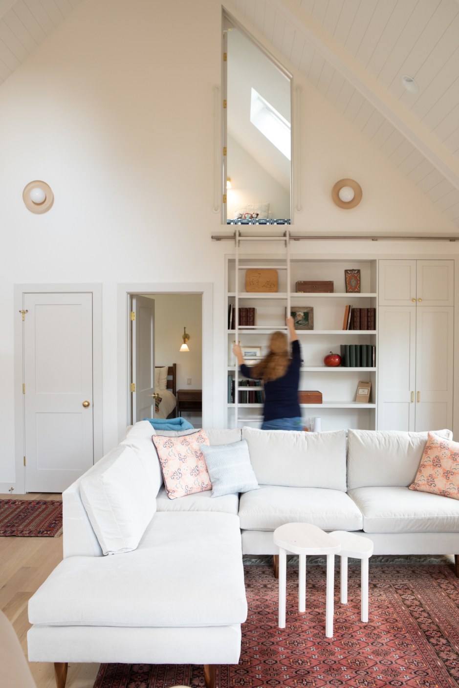 Built for longer stays by out-of-state parents, the cottage consists of a main volume that includes a great room, a small scale kitchen, sitting area, and eating nook. To the rear is a private bedroom and bath. Up the loft ladder is a kids play loft with it’s own 1/2 bath. A comfortable home away from home for visitors.