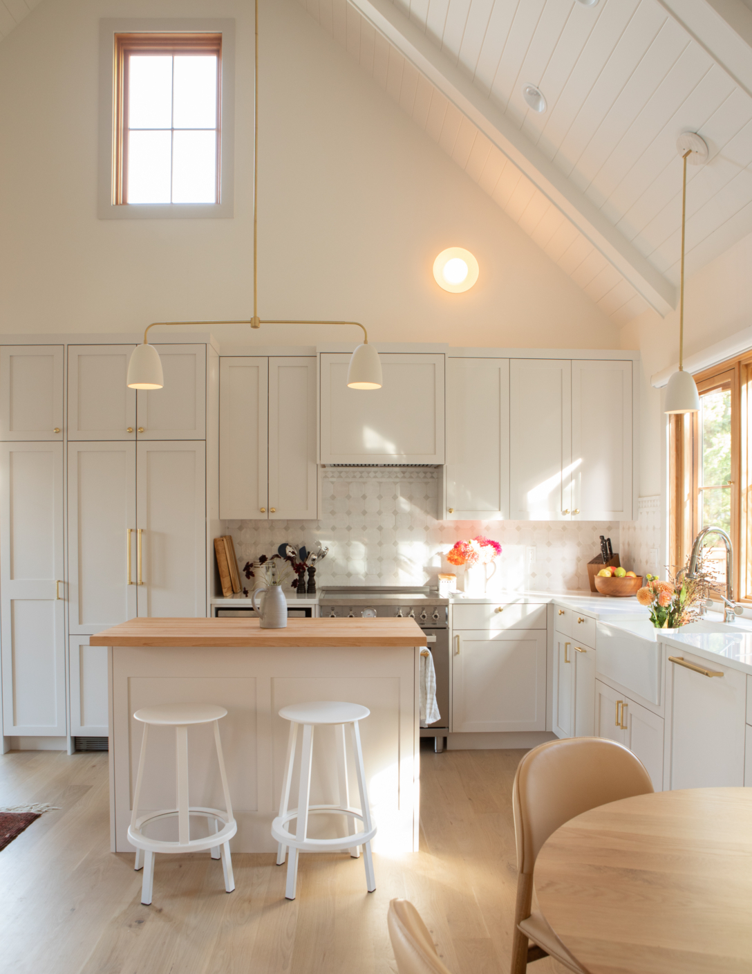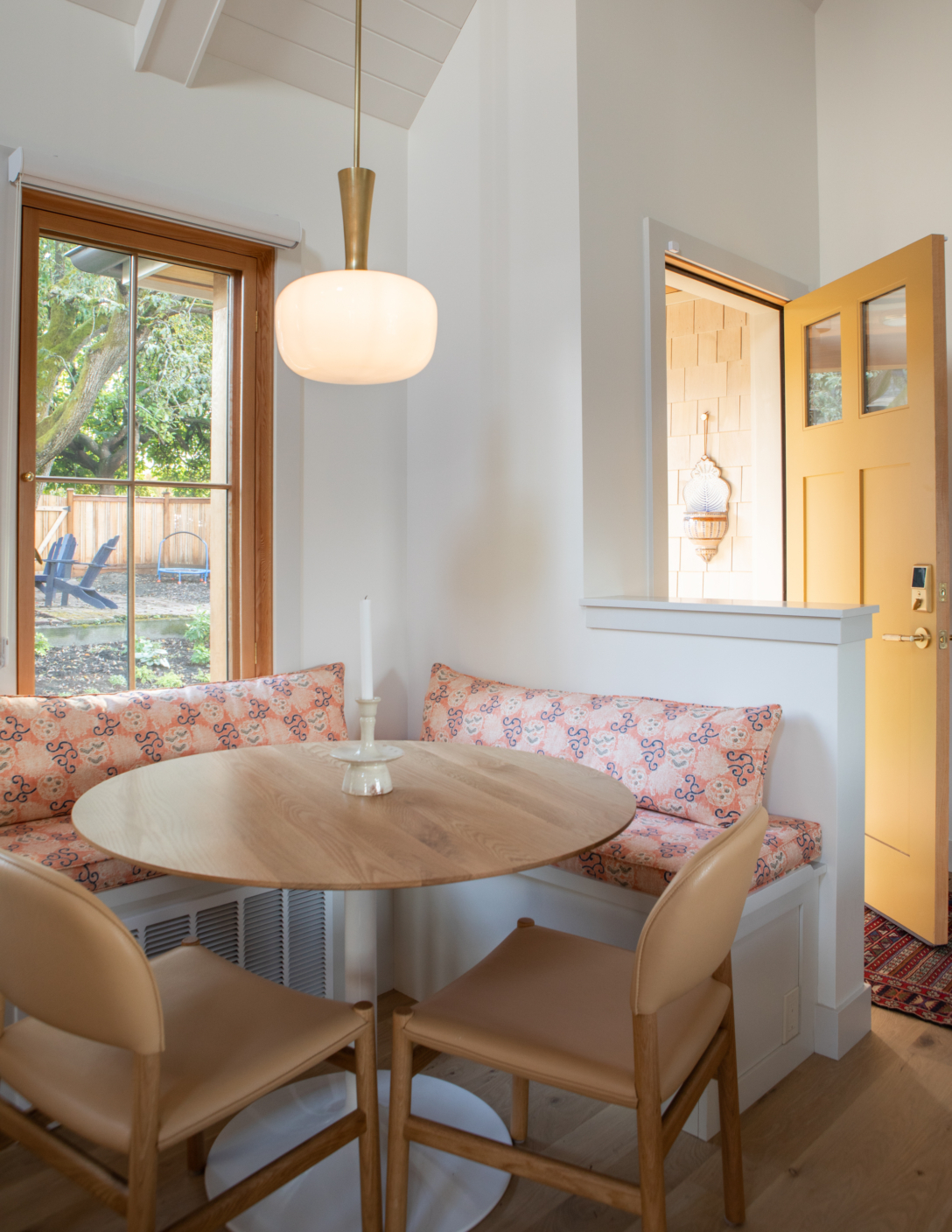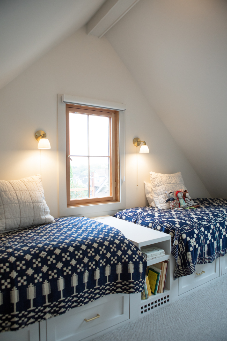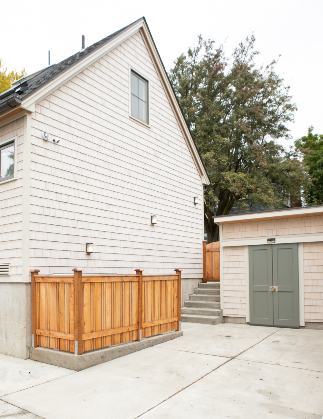 Built for longer stays by out-of-state parents, the cottage consists of a main volume that includes a great room, a small scale kitchen, sitting area, and eating nook. To the rear is a private bedroom and bath. Up the loft ladder is a kids play loft with it’s own 1/2 bath. A comfortable home away from home for visitors.