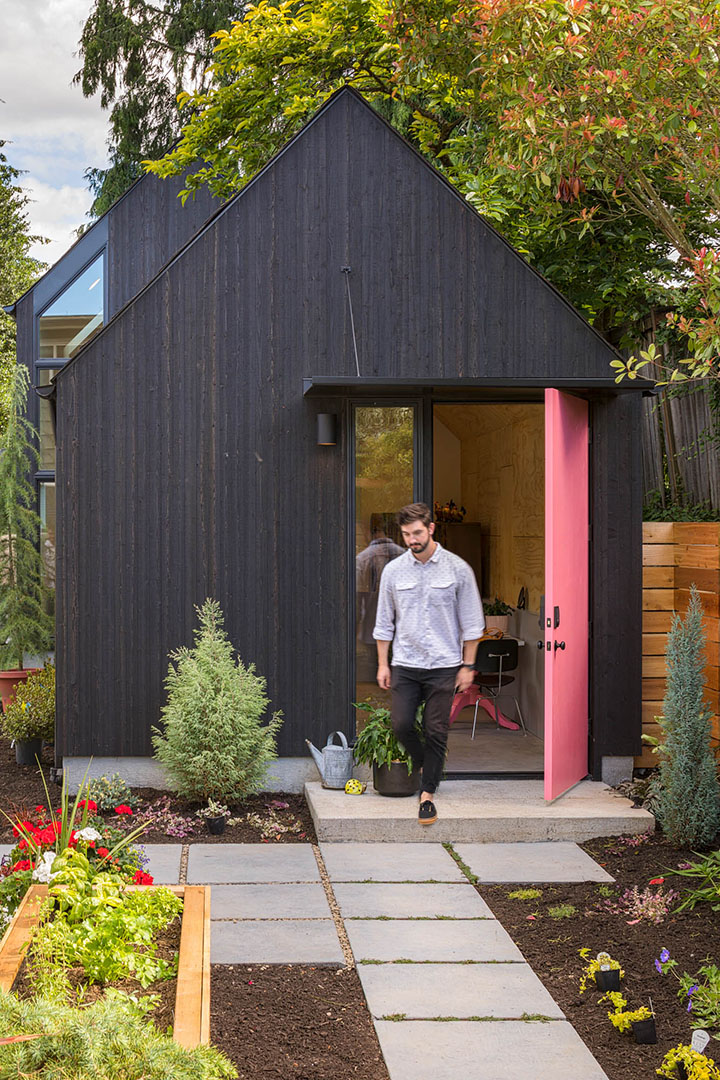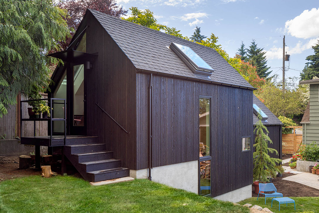 Best Practice Architecture was hired by a Seattle homeowner to create Granny Pad, a spacious home created from a backyard garage. The project began when the client couldn’t find appropriate housing for “Granny” in their neighborhood. With a growing family, they didn’t have enough space in their house to accommodate her needs and maintain the privacy everyone in the family wanted. And with a shortage of affordable housing in Seattle, the option of moving to a larger house in the city was out of reach. Best Practice saw converting the client’s existing garage (previously used as storage) as the perfect solution. Design considerations included looking at the project on both a short-term and long-term timeline. First, Best Practice needed to address the immediate needs of the client. They also considered future uses of the space as a possible rental unit, studio, office or other income-generating project for the family. And they needed to do all of that using just 571 square feet.