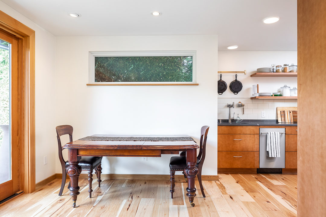 The owners created a space for their adult children to live and for themselves to eventually age-in-place in their beloved neighborhood. We used all available lot coverage to create this new dwelling that creates shared outdoor space, connection to the outdoors and an aging in place main level.